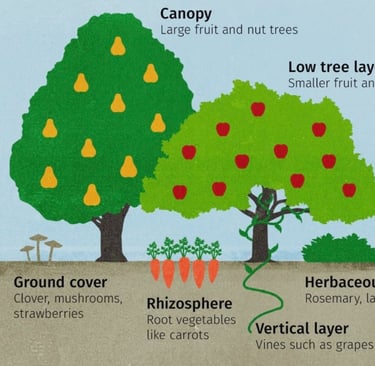 During my prolonged research, I came to know about many pioneers in these fields (Bill Mollison, Robert Hart, and Masanobu Fukuoka) who dreamed of creating a self-sustaining planet for all. Their revolutionary journey of turning their dreams into reality was impeccable and adopted by many for better personal and planetary health. Mollison devised the idea of ‘Permaculture’ (permanent agriculture) and Hart proposed ‘Food Forestry’ (a seven-tiered system that mimics the natural vegetation of the forest, creating a self-sustaining environment and diverse biodiversity regarding food culture and production, which we will learn about in this blog.